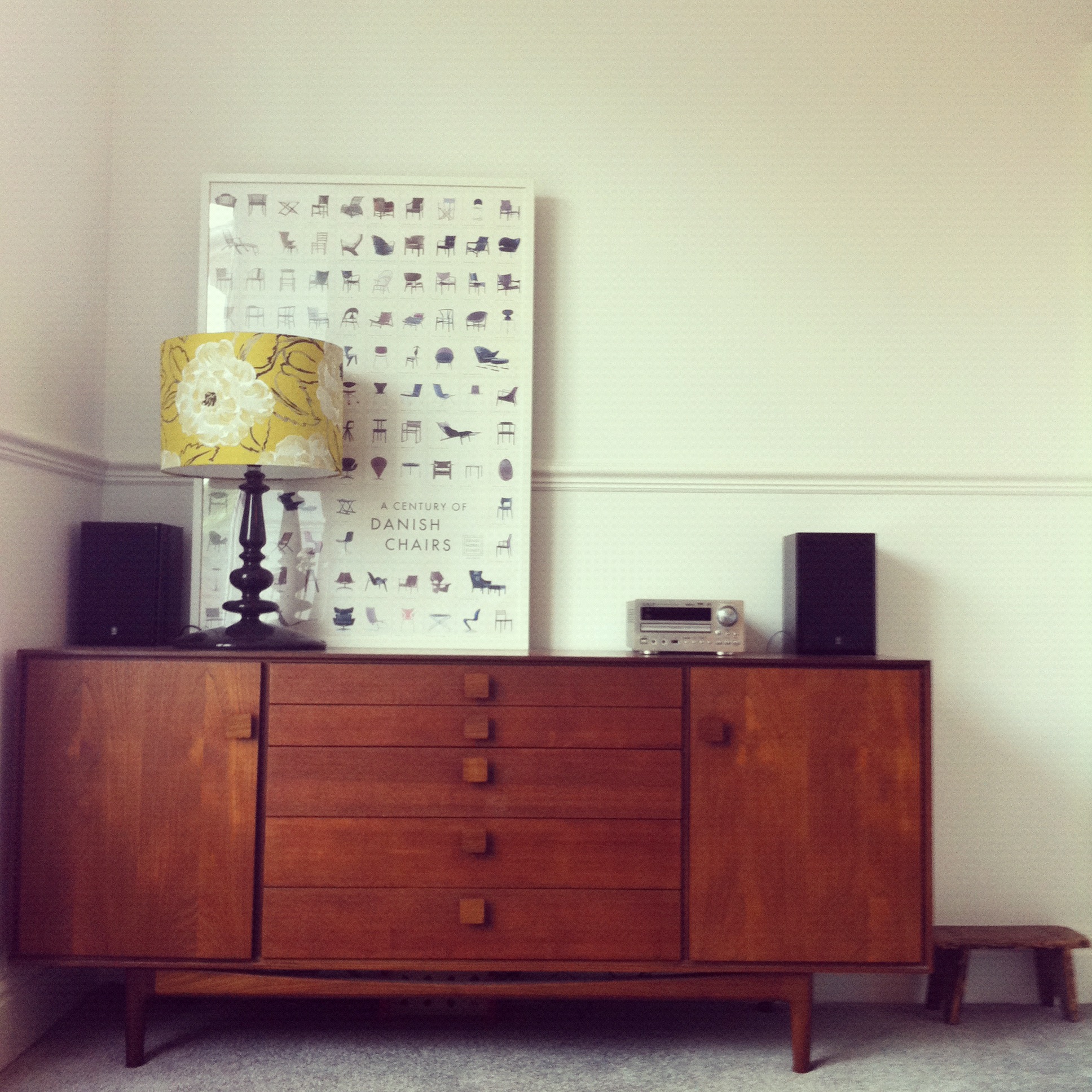 Big sideboard, little stool. I must confess that although it was a perfect home for the decks and vinyl in our twenties, I’m glad they have been relegated to the IKEA Expedit next door!