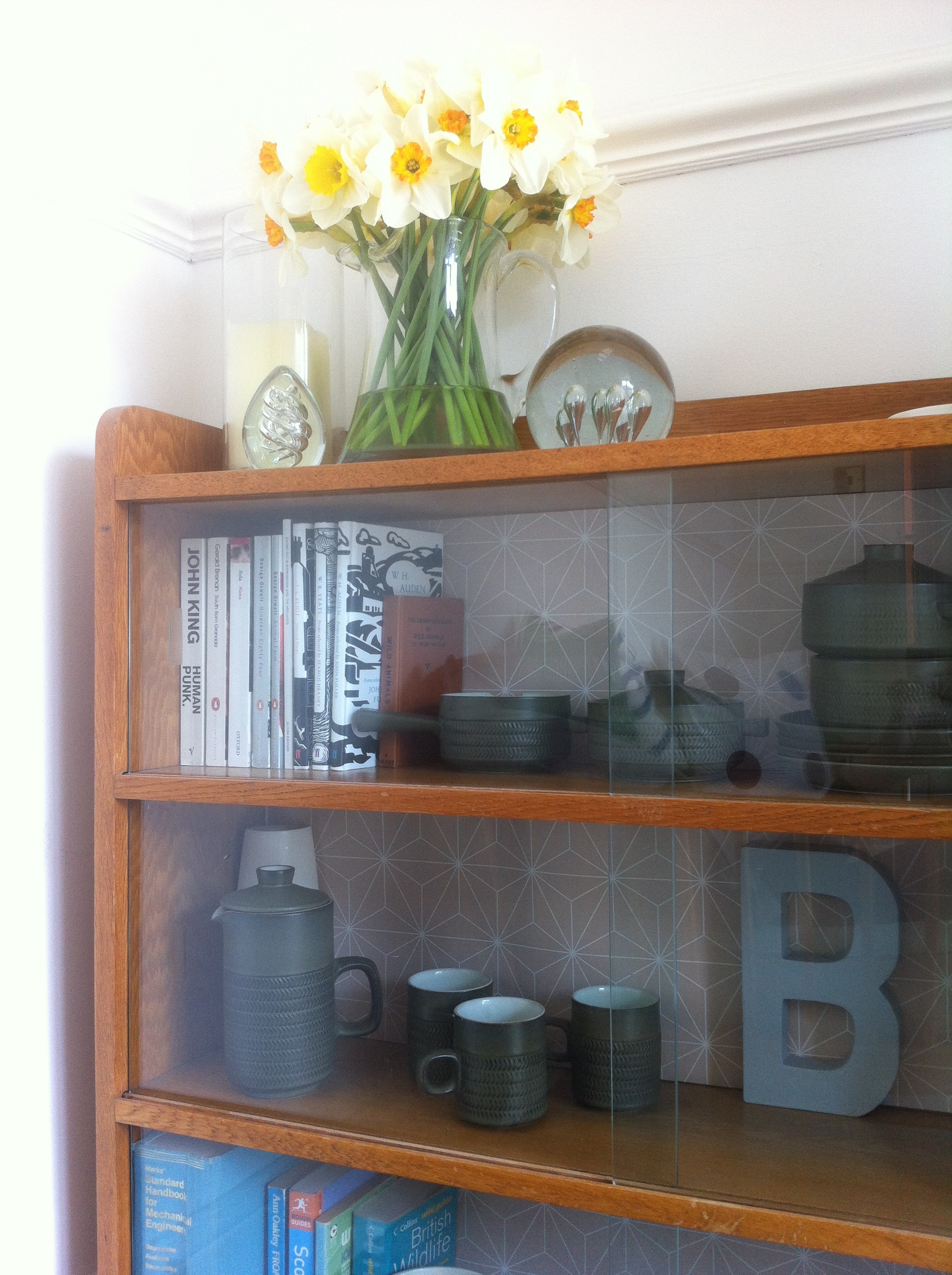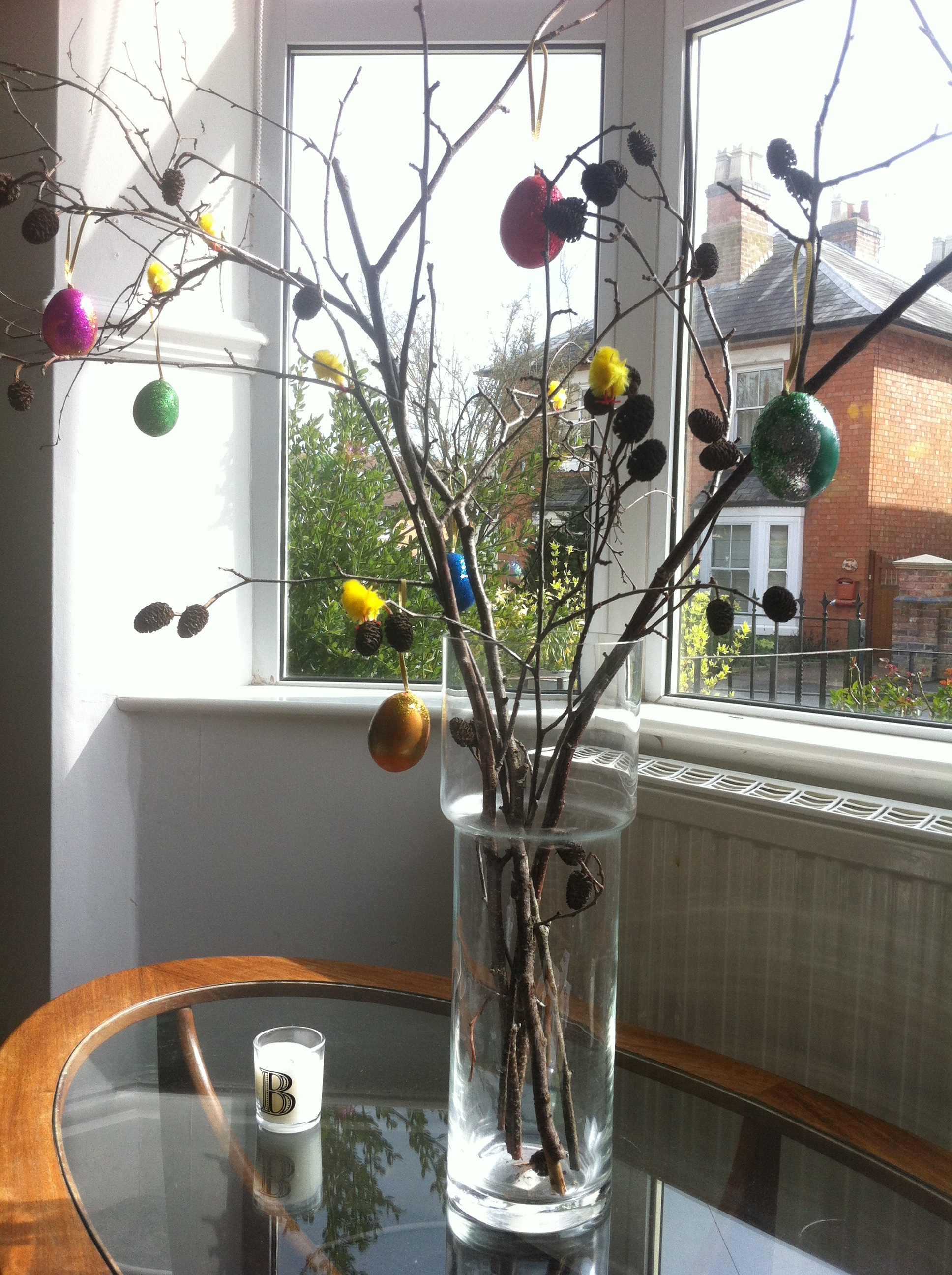A bit of colour (okay, it’s mostly a restricted pallette of green, blue, white and purple) in a slowly evolving border in the back garden. The forget me nots are spreading nicely (with a bit of help). The euphorbia wulfenii is looking majestic with its acid green plumes. The ‘Shirley’ tulips have started off a lemon and lime white shade, and are maturing gradually with purple tinged petal edges. A few bluebells are peeping through the greenery, and I’m looking forward to the allium ‘purple sensation’ popping its purple pompoms, and the nigella seedlings (the result of a scattered packet of seeds) launching their frothy blue stars. There’s more to do, and I definitely need to plug a few gaps in the bulb planting come autumn, but it’s feeling like progress.